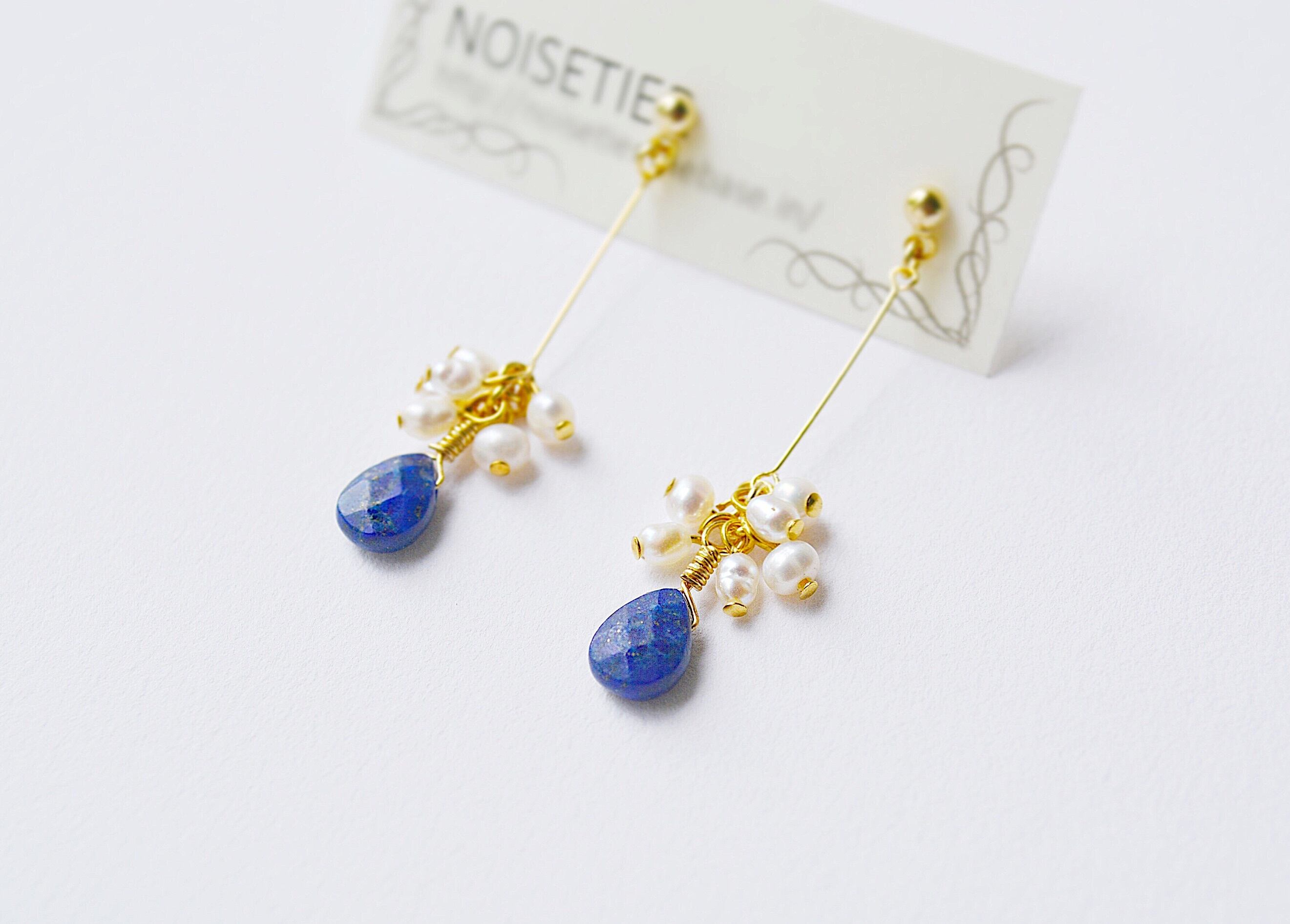 しずくカット天然ラピスラズリの青が印象に残るピアス(イヤリング)✴︎